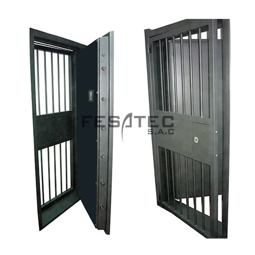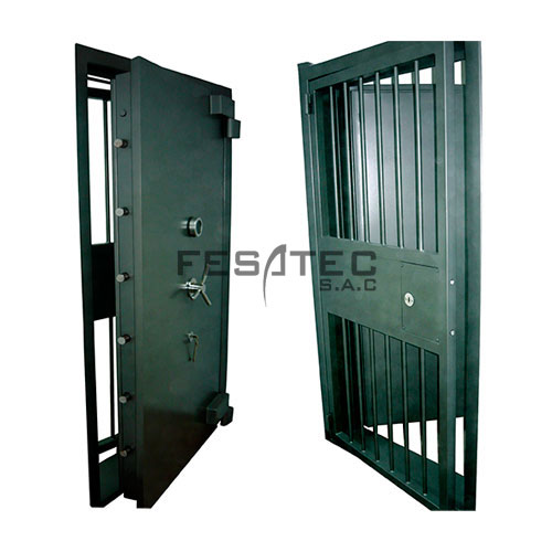 Empleándose material de alta calidad, es por esto que logra un coeficiente de seguridad muy alto. Las puertas llevarán como protección adicional dos sistemas independientes contra ataque con oxicorte. Todos éstos materiales han sido unidos con soldadura eléctrica de arco, formando así un solo block muy resistente (inseparable).
