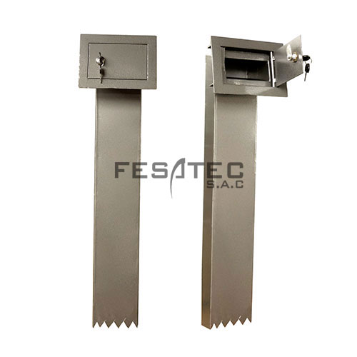 Cuerpo exterior está formado de doble plancha de acero, y sus uniones se logran por medio de soldadura eléctrica en forma continúa, logrando así obtener un solo block muy resistente y solidez absoluta. El peso se ha dado en proporción de la caja de acuerdo a las especificaciones. En el lado inferior dispone de dos perforaciones para pernos expansores que aseguran la caja al piso, si es necesario.